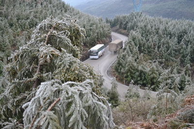 據(jù)該民警介紹,從9日凌晨開始,梅花山的道路就出現(xiàn)結(jié)冰現(xiàn)象,嚴(yán)重時(shí)厚度超過一公分。而當(dāng)天凌晨至昨天,為保證行車安全,道路分時(shí)段進(jìn)行交通管制。據(jù)了解,10日上午,交警還對2公里結(jié)冰嚴(yán)重的路段進(jìn)行了撒鹽除冰。民警介紹稱,當(dāng)天梅花山頂峰的氣溫低至零下4℃。