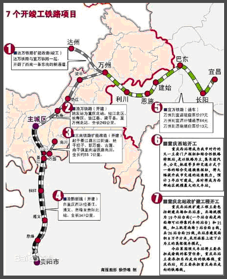 渝黔高鐵,又名渝黔鐵路擴能,即渝黔鐵路新線,北起重慶市,經(jīng)貴州省遵義市后向南到達貴州省省會貴陽市止。 渝黔鐵路新線不但可使渝黔兩地之間運能翻番,還將成為重慶出海大通道。 渝黔鐵路舊線自重慶西站經(jīng)綦江、遵義、息烽至貴陽北站,全長347公里。該線是西北、西南至華南地區(qū)快速鐵路通道的重要組成部分,也是溝通重慶、貴陽兩市的城際鐵路。據(jù)了解,渝黔線開行客車每日12對、貨車每日22對,線路通過能力利用率達95%,線路能力已飽和。 新建渝黔鐵路新線,將為舊渝黔鐵路姐妹路段,初步規(guī)劃為國鐵I級,全程345公里,時速為200公里。渝黔高速鐵路將與蘭渝線、貴(陽)廣(州)線連接,成為西部另一個重要的快速出海通道。 渝黔鐵路新線通車后,舊線路將逐步轉(zhuǎn)為貨運線路,渝黔高速鐵路將更多地執(zhí)行客運任務 。 渝黔鐵路新線[2] 自身客貨分流也已規(guī)劃明確:磨心坡至銅罐驛線、魚嘴至興隆場貨車外繞線以貨為主,北碚經(jīng)蔡家、重慶北站至魚嘴,以及井口至小南海、重慶站、梨樹灣環(huán)線以客為主。 新線項目確定的線路走向為:自重慶引出,經(jīng)綦江、桐梓、遵義、息烽至貴陽北站,線路全長345公里。其中重慶市境內(nèi)112公里。貴州境內(nèi)233公里。 渝黔新線為新建復線,鐵路主要功能是客運、快運和集裝箱運輸,主要技術(shù)指標要求轉(zhuǎn)彎半徑大于7000米,路基寬12米,坡度控制3‰以內(nèi),車站間距35-40公里、直線長度2.5公里、寬600米、鋪設6條軌道。 【黔渝高鐵的線路圖】(來自網(wǎng)絡 僅供參考) 【相關(guān)附件】: ![]() |