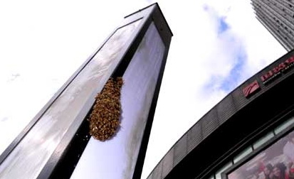 圖:世紀(jì)城國貿(mào)一根燈柱上千蜜蜂燈柱上“安營扎寨”