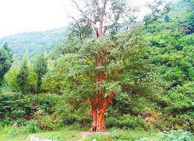 印江“川黔紫薇” 樹齡:1380余年 發(fā)現(xiàn)時(shí)間:2014年7月被發(fā)現(xiàn) 長(zhǎng)在何地:印江自治縣永義鄉(xiāng) 印江自治縣的“川黔紫薇”被列入“全國100株國家級(jí)人文古樹保健對(duì)象” 川黔紫薇位于印江自治縣永義鄉(xiāng)集鎮(zhèn)所在地,樹高34米,胸徑1.9米,冠幅15米,樹齡1380余年,1998年榮列貴州省古、大、珍、稀樹名錄,經(jīng)專家鑒定,為當(dāng)今世上最高、最大、樹齡最長(zhǎng)的紫薇,堪當(dāng)國寶之譽(yù)。 名詞解釋:川黔紫薇 川黔紫薇(Lagerstroemia excelsa (Dode) Chun.)千屈菜科、紫薇屬落葉大喬木,高20-30米,胸徑可達(dá)1米;樹皮灰褐色,成薄片狀剝落。葉對(duì)生,膜質(zhì),橢圓形或闊橢圓形,頂端突然收縮,闊短尖,基部鈍形,兩邊不等大,邊緣波狀,上面暗綠色,無毛,下面被柔毛,后來除沿葉脈外其余變無毛,花藥圓形;子房球形,無毛,蒴果球狀卵形,種子長(zhǎng)不超過3毫米。花期4月,果期7月。產(chǎn)中國貴州、四川、湖北;常生于海拔1200-2000米的山谷密林中。 【相關(guān)附件】: ![]() |