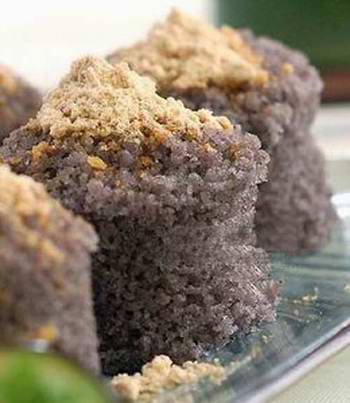 沖沖糕起源于黔南布依族苗族自治州獨山縣,有100余年歷史,以其制作方便、價廉物美的特點廣受當?shù)厝说南矏邸?/p> 制作“沖沖糕”的工具是采用棕樹木制成的,分為隔板、蒸籠、木棒3大件。其中隔板略小于鍋口,將之架于蒸鍋口上,起密封和支撐作用,板面根據(jù)能容納小蒸籠 的個數(shù)來鉆氣眼;蒸籠形如腰鼓,一般高約10厘米,直徑6厘米左右。以中間穿上無數(shù)小孔的鐵板作甑底,用時只需將籠罩在隔板眼上即可。另外,木棒是固定在 隔板的一邊上的,主要用于蒸好的沖糕。 秈米、糯米、芝麻、紅糖、白糖、花生。 質(zhì)柔軟香甜,色淡黃中偏紅,地方味濃厚,口感有韌性。 相關附件: ![]() |