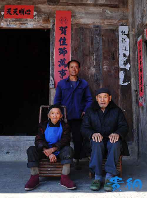 中國(guó)最長(zhǎng)壽夫妻誕生在貴州:貴州省平塘縣通州鎮(zhèn)黨振村巖井組。 楊勝忠 1902年12月出生,楊金氏(本名金繼芬)1905年9月出生,貴州省平塘縣通州鎮(zhèn)黨振村巖井組人。 再過(guò)一個(gè)月,這對(duì)中國(guó)最長(zhǎng)壽夫妻的年齡加起來(lái)就是215周歲了。 昨天,從貴陽(yáng)驅(qū)車3小時(shí),穿過(guò)層層疊疊的大山,我們來(lái)到了他們的家里——一間沒(méi)有閣樓,看起來(lái)已經(jīng)有些年頭的瓦蓋木房子。 這里平均海拔約1000米,空氣顯得格外清新。 106歲還能喂豬摘菜 見到106歲的金繼芬老人時(shí),她剛?cè)ヌ碡i食回來(lái)。 “剛才我在喂豬,手還有點(diǎn)臟。”老人個(gè)字1米5左右,拄著拐杖從廚房方向走向大廳,笑呵呵地跟我們打招呼。 起床、燒開水、和玉米面和糠,提著超過(guò)10斤的豬食去喂豬。 豬圈門約1米高,由4塊差不多大小的木板圍起來(lái),每塊木板有3斤多重。 先卸下兩塊,再跨過(guò)剩下的半米高柵欄,拄著拐杖,走下4級(jí)階梯,把豬食倒進(jìn)食槽里。 早中晚,一天喂3次。這是金繼芬老人每天都要干的活。天氣好的時(shí)候,她還會(huì)到菜地里摘菜。 金奶奶的丈夫,109歲的楊勝忠有1米73的個(gè)頭,聽力已經(jīng)不大好,這兩天還有些感冒。昨天看到我們來(lái),他只是樂(lè)呵呵地笑著,坐在門口逗小貓玩。 “他愛睡覺(jué),早上起來(lái)曬曬太陽(yáng),吃過(guò)中午飯就再歇一會(huì),沒(méi)事就逗家里的4只小貓。”金奶奶很健談。(來(lái)源:貴網(wǎng)11月11日訊(黔中早報(bào)記者 李蔓倩 圖/張雷)) 相關(guān)附件: ![]() |