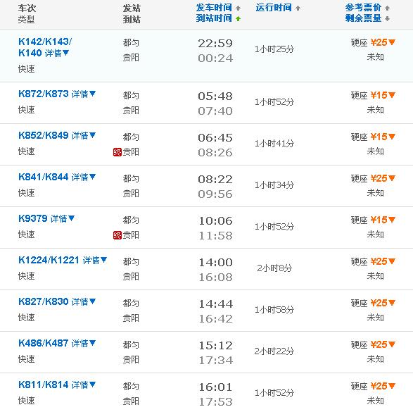 [詳細描述]都勻到貴陽的火車最新時刻表是?