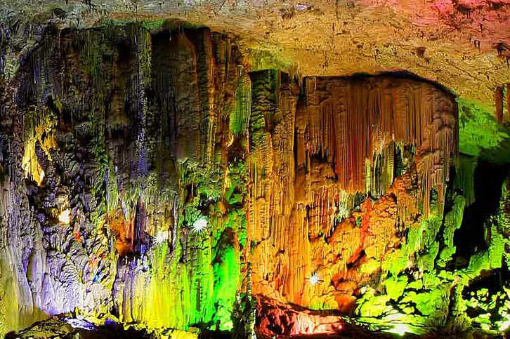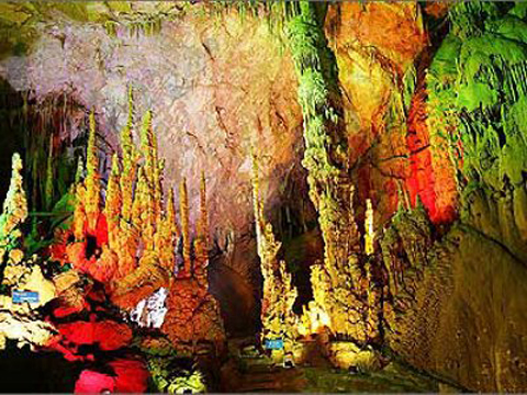 原名打雞洞,位于貴州省織金縣城東北處的官寨鄉(xiāng),距省城貴陽(yáng)120公里。它是一個(gè)多層次、多類型的溶洞,洞內(nèi)有40多種巖溶堆積物,它是中國(guó)目前發(fā)現(xiàn)的一座規(guī)模宏偉、造型奇特的洞穴資源寶庫(kù)。