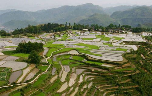 水城野鐘梯田位于水城縣野鐘鄉(xiāng)新發(fā)村,屬野鐘鄉(xiāng)東南部,距野鐘鄉(xiāng)向政府12公里,距六盤水市中心區(qū)90公里。村內地形北高南低,地勢溝壑起伏,最高海拔達到1186米,最低海拔有680米,屬亞熱帶氣候。其中水田面積760畝,旱地400畝。春夏兩季是拍攝梯田的最佳時間。